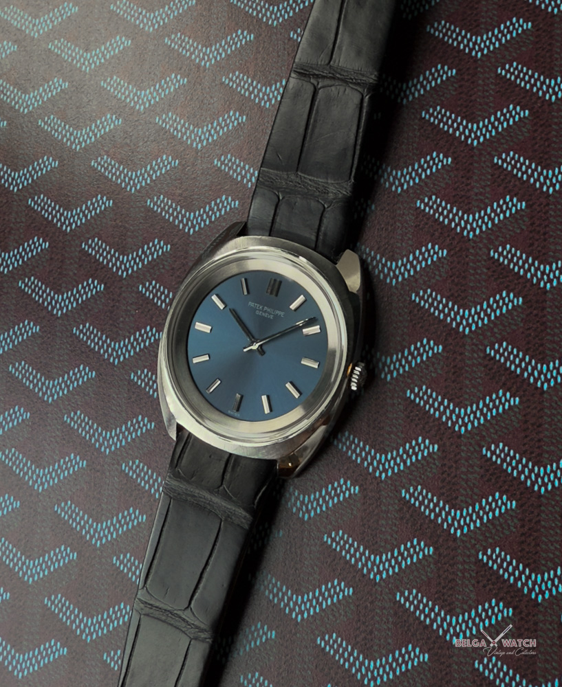 Exceptionnelle Calatrava en acier au cadran bleu électrique.
