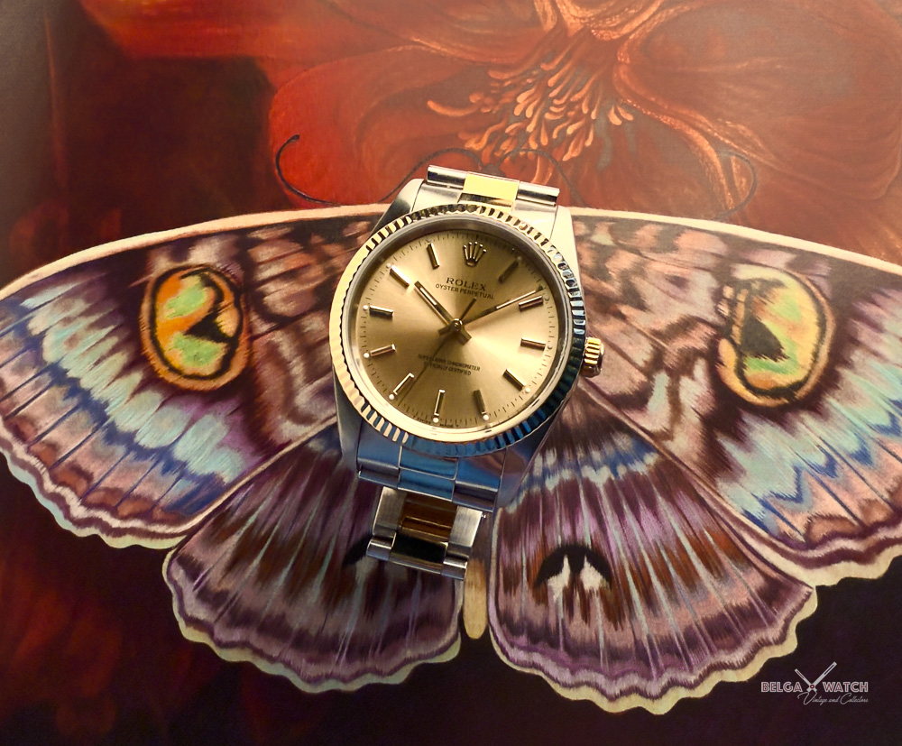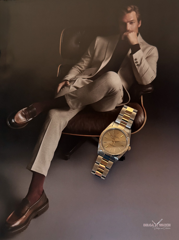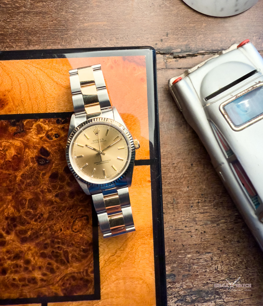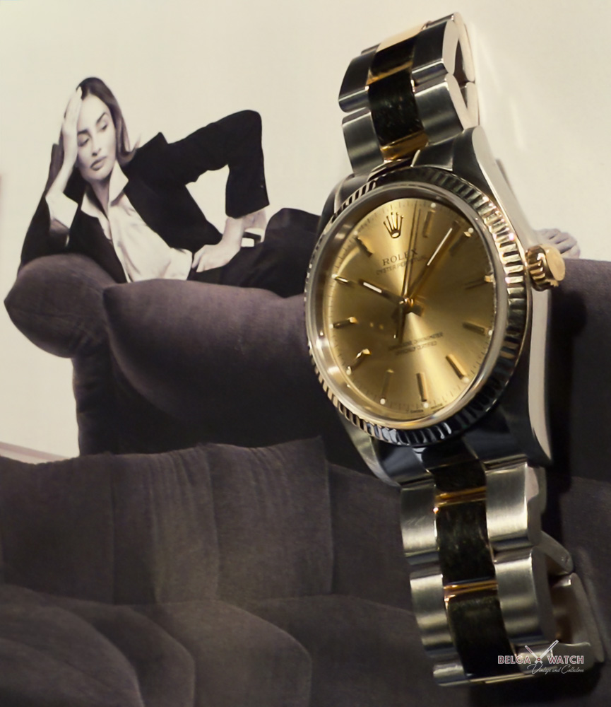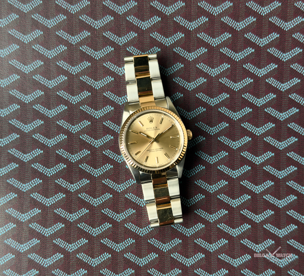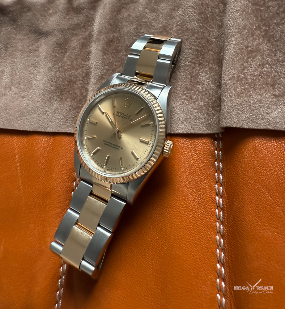 34 mm of elegance in a timeless, gender-neutral two-tone Rolex Oyster.