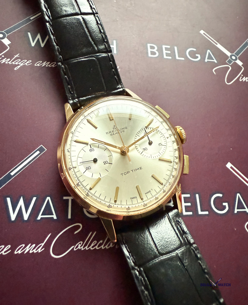 Solid mate 18K yellow gold, Two registers on a perfect silver Tritium dial.